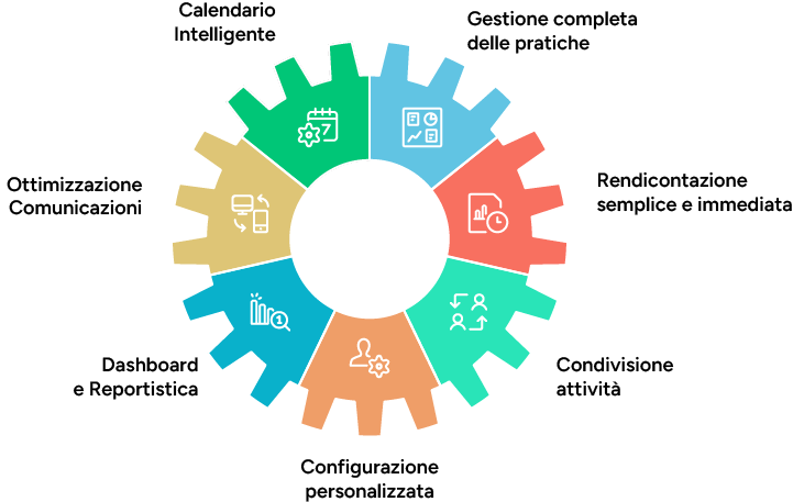 Assegna attività e pratiche ai membri del team con controllo completo su costi orari, budget, stato di avanzamento e documenti. Ogni pratica ha la sua area dedicata con comunicazioni, file e progressi sempre sotto controllo.